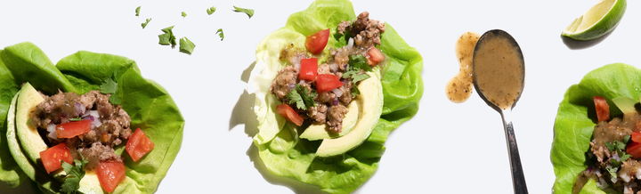 It’s taco time! Remove your pan from the burner and add the meat to lettuce wraps, and top with your favorite taco fixings! May we suggest avocado, diced tomatoes, onion, and cilantro?