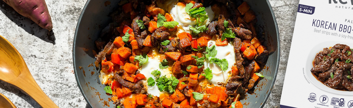 Cook Kevin’s Natural Foods Korean BBQ Beef according to package instructions. Once cooked, transfer the beef to a bowl and set aside.