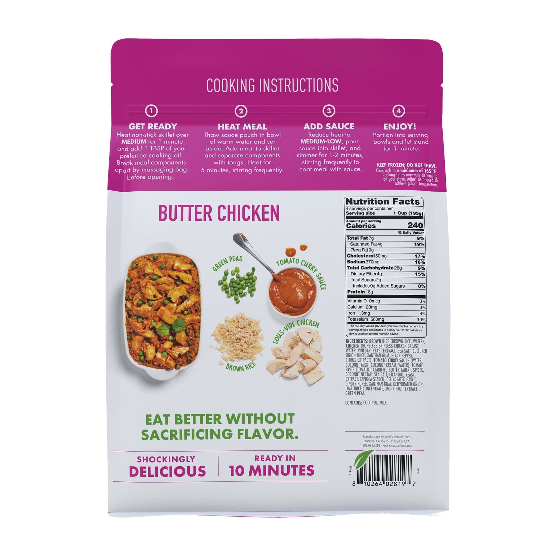 Brown Rice (Brown Rice, Water), Chicken (Boneless Skinless Chicken Breast, Water, Vinegar, Yeast Extract, Sea Salt, Cultured Onion Juice, Xanthan Gum, Black Pepper, Citrus Extract), Tomato Curry Sauce (Water, Coconut Milk [Coconut Cream, Water], Tomato Paste [Tomato], Clarified Butter [Milk], Spices, Coconut Nectar, Sea Salt, Cilantro, Yeast Extract, Tapioca Starch, Dehydrated Garlic, Ginger Puree, Xanthan Gum, Dehydrated Onion, Lime Juice Concentrate, Monk Fruit Extract), Green Peas.